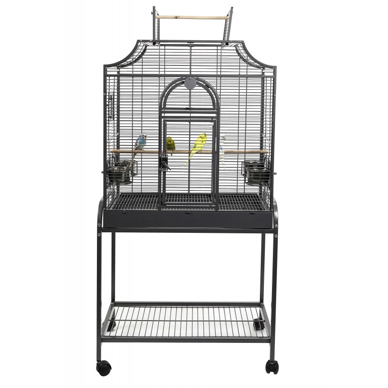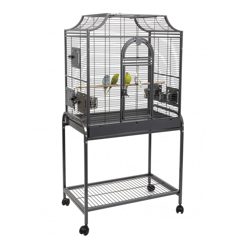 The cage Caique I Plus is suitable for budgies, Finch, Small Parrots e.g. Senegals, and other similar-sized birds. The Caique I Plus cage features a pull-out cleaning tray, safety grill, castors, and one large opening front door. The Caique I Plus Birdcage includes two wooden perches and four feeding bowls.
