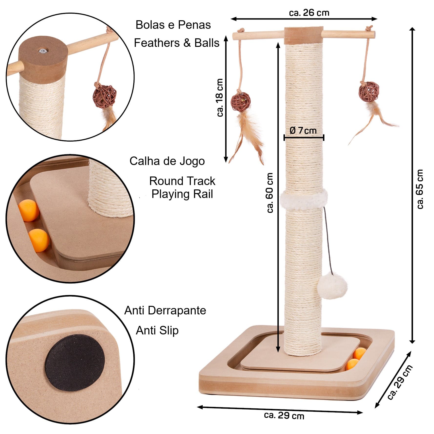 The "Bea" cat scratching post with integrated play rail and play balls is an ideal addition to any cat household - ideal for adult cats and also for kittens! This product cleverly combines scratching fun and playing pleasure and encourages their physical activity and mental stimulation offers your cat a varied activity option