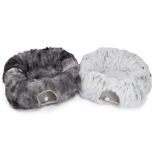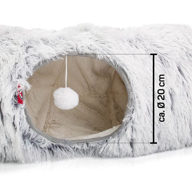 The CUBI cat tunnel offers your cat a variety of play and discovery fun. The rectangular tunnel consists of two parts that can be connected using practical connecting loops. The outside of the tunnel is covered with fluffy faux fur, while the inside is made of velvety cuddly fur to provide your cat with maximum comfort.