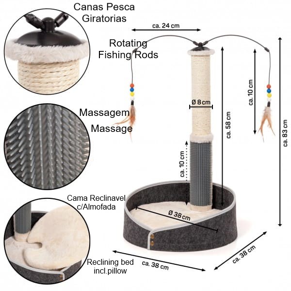 At the top of the post, there are two fishing rods with feathers at the end, which can also rotate. These interactive toys stimulate your cat's natural hunting instinct and provide lots of fun.