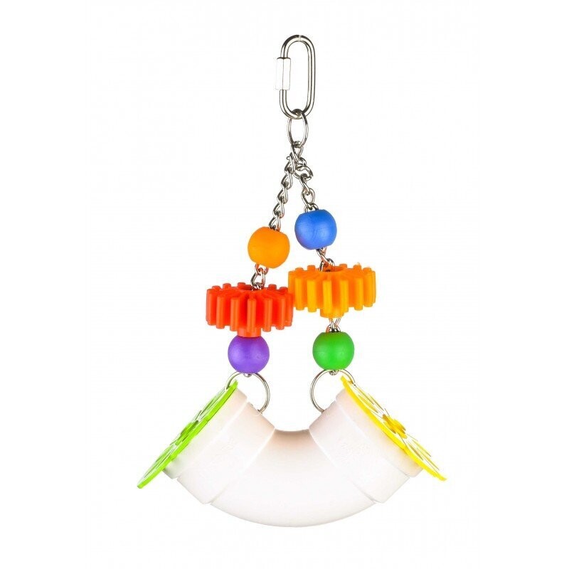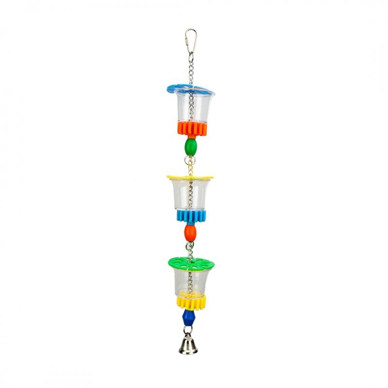 It can easily be placed in the cage and is full of funny details, such as bamboo and a little bell, and you can hide some treats Suitable for Cockatiels, caiques, and similar birds.
