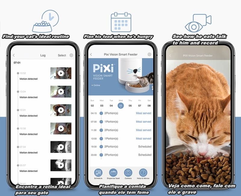 You can record your loving message for the feeder to automatically play with each meal served, calling your cat to eat, even when you’re not interacting with the Catit PIXI app.
