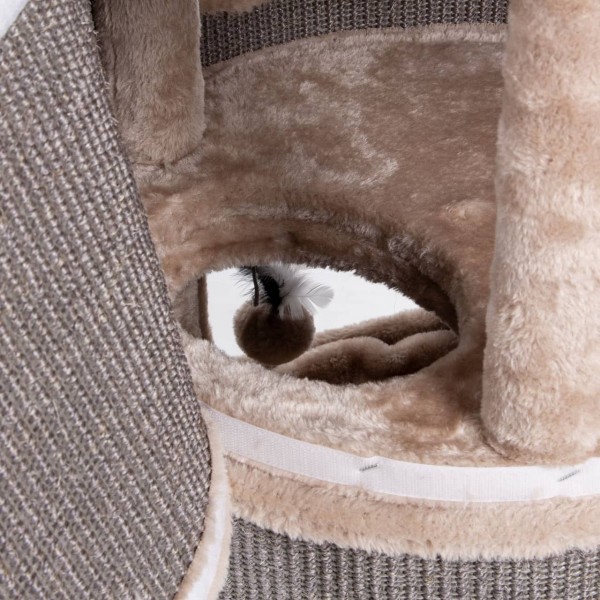 The scratching post has 3 cat caves where your cat can retreat to sleep, including cuddly cushions. The scratching post is also equipped with a viewing area at the top of the tower from which your cat can look around and relax.