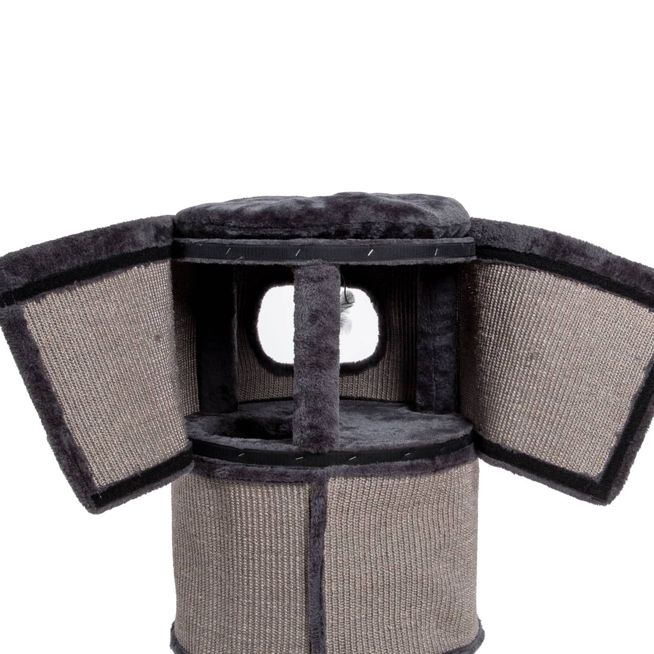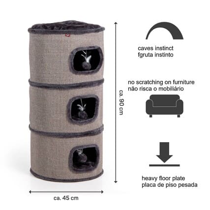 The cat tree combines a scratching tower and scratching barrel in one. The perfect choice for cats that like to climb and scratch - particularly suitable for multi-cat households due to the different lying levels.