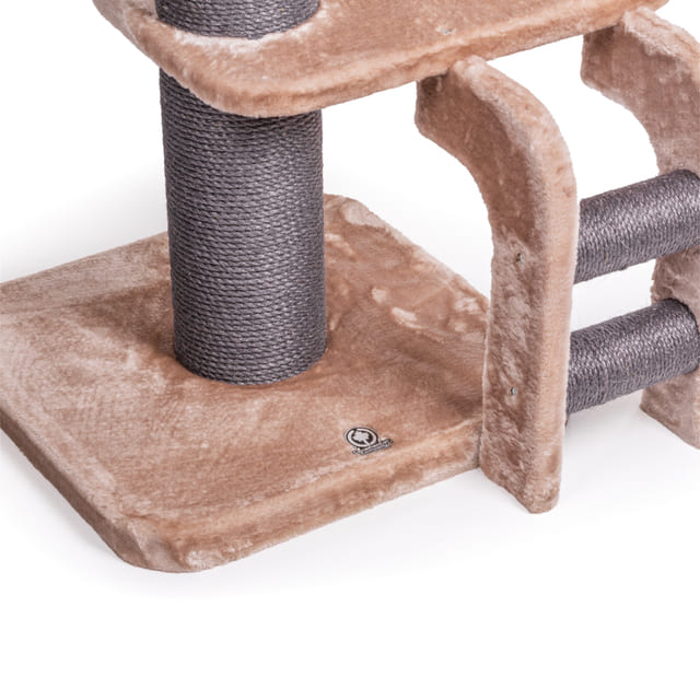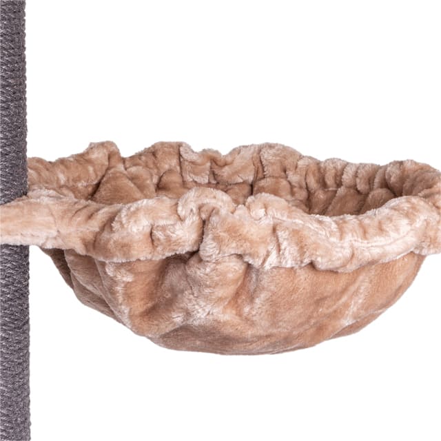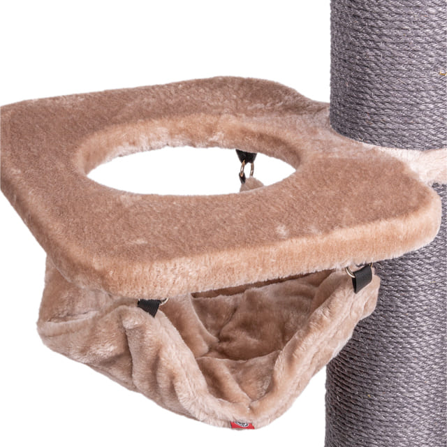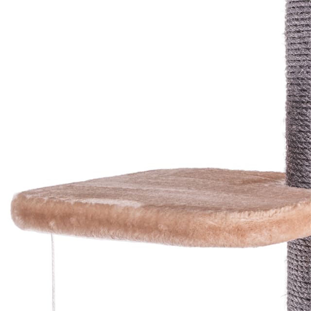"Paris" is not only a high scratching post, but also a cosy retreat and an adventure playground all in one. The soft and cosy mat offers the perfect place to rest and sleep. The comfortable lounger on one of the highest levels allows your cat to watch the action from above. For playful moments, a small platform is equipped with a play ball to encourage your cat to play actively.