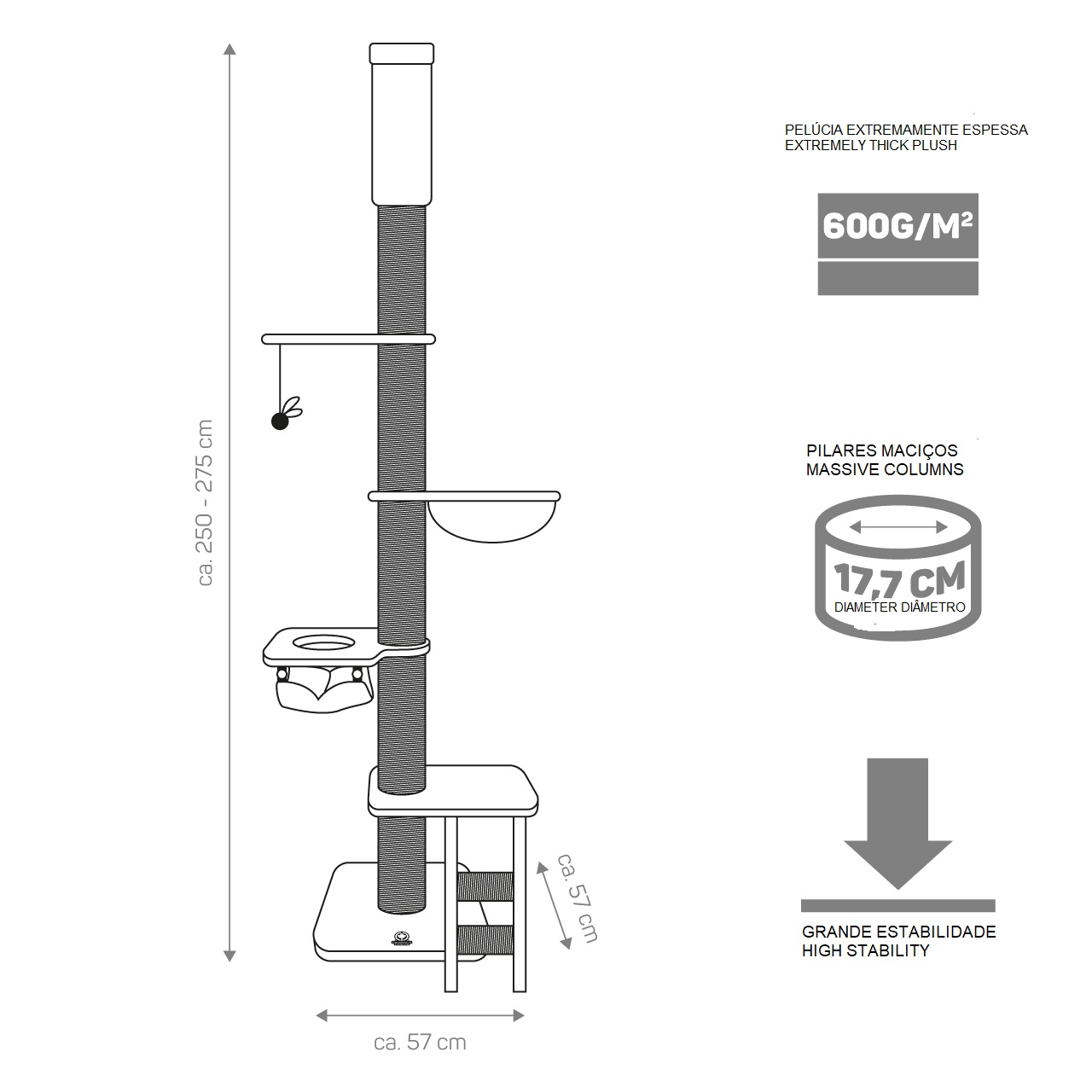 Total height: approx. 250 cm up to max. 275 cm (tensionable)