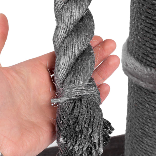 The post's stability is guaranteed by its heavy base plate. Even when he's romping around, he stays firmly on his feet and doesn't tip over. So you can sit back and relax while your cat plays.