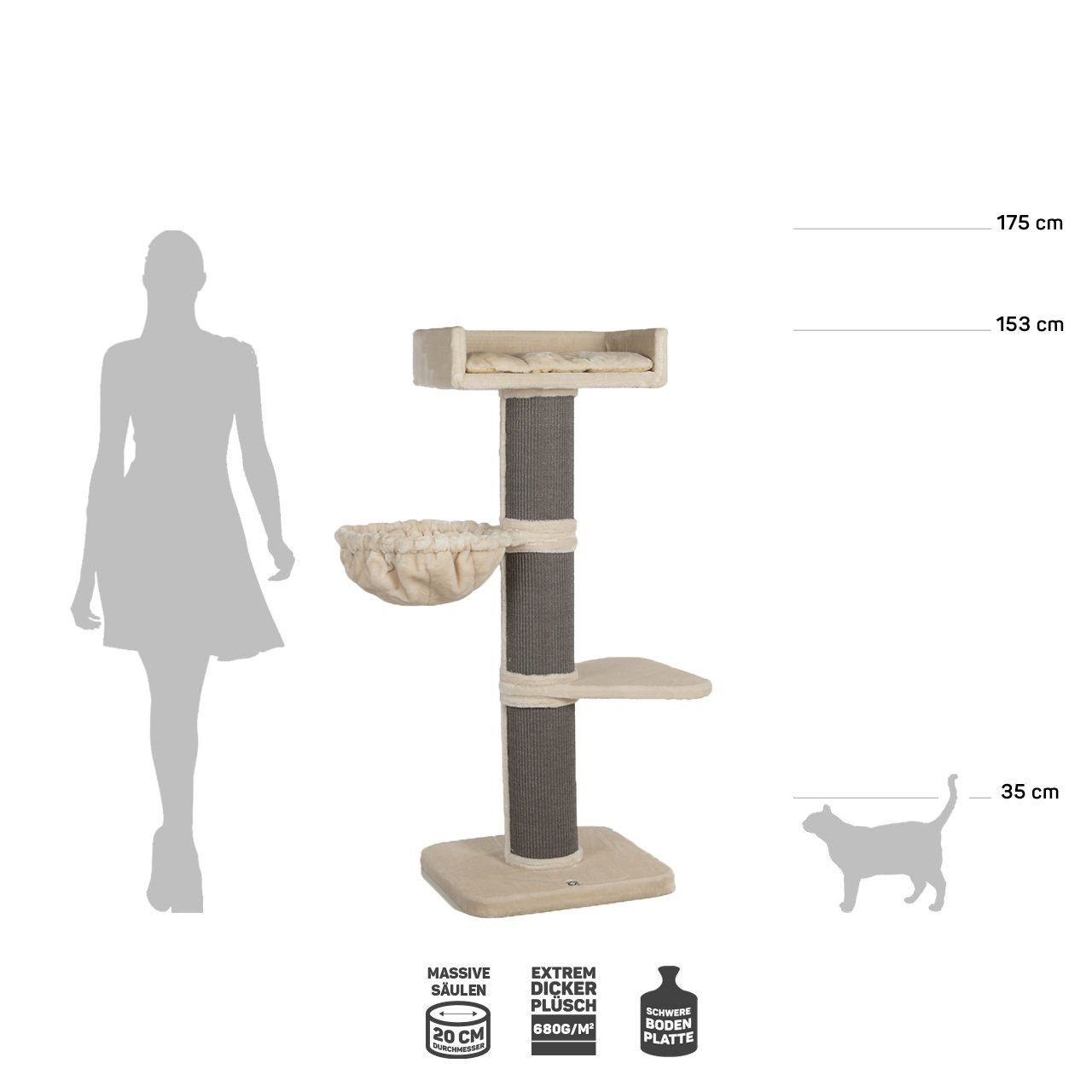 Play great, scratch, but also withdraw and snooze in the soft hammock or on one of the two lying areas.