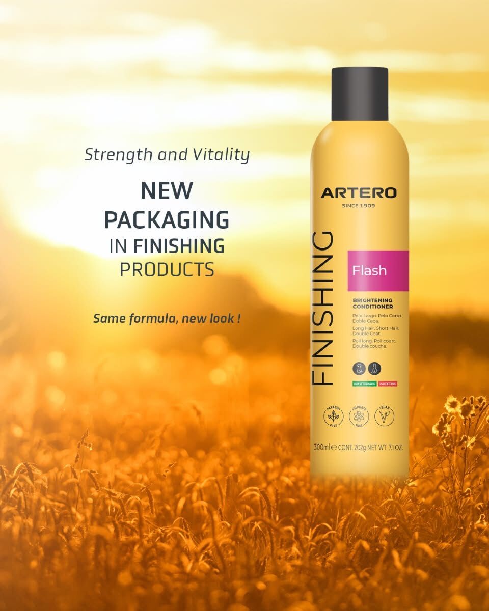 Easy brushing spray and polish. Indispensable in any dog grooming salon. The immediate effect provides shine and an extraordinary conditioning effect without caking. Quick solution for frizz.