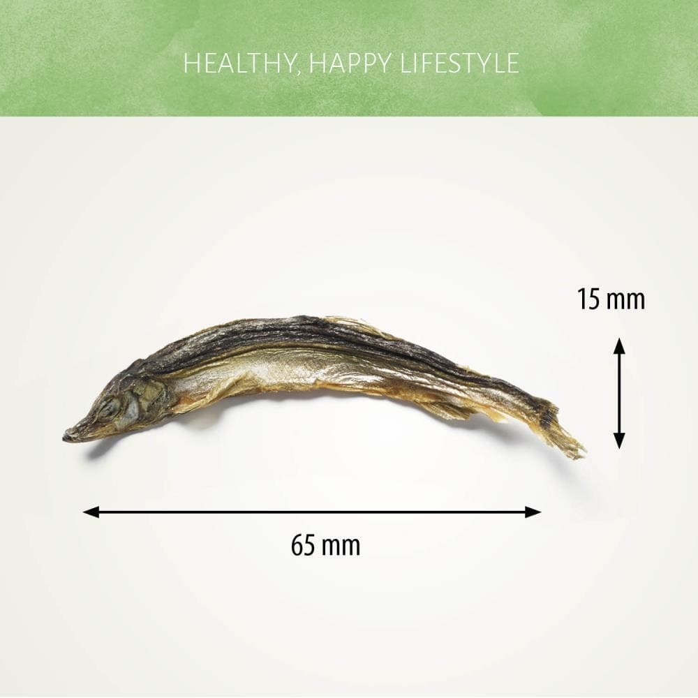 Dê ao seu cão o sabor do Atlântico Norte como os capelim. O capelim é um peixe importante, mas vulnerável, do mar, 100% natural e comestível, diretamente das águas geladas.