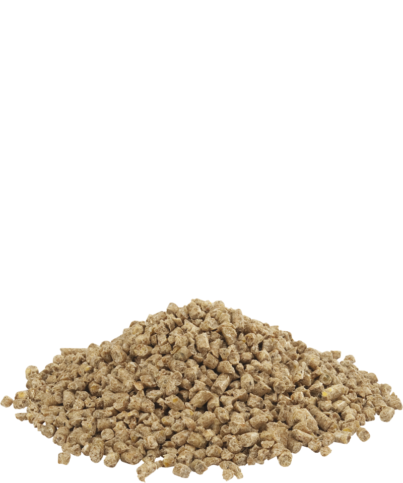 Ingredientes: Trigo, soja (produzida a partir de soja geneticamente modificada), glúten de trigo, milho, sementes de girassol, farelo de arroz, farelo de trigo, farelo de trigo, melaço de beterraba, carbonato de cálcio, glúten de milho, fosfato monocálcico, óleo de girassol, óleo de palma, cloreto de sódio, bicarbonato de sódio, sepiolite. Componentes analíticos: proteína bruta 16,5%, gordura bruta 4,0%, cinza bruta 6,5%, fibra bruta 4,5%, lisina 0,82%, metionina 0,37%, cálcio 1,15%, fósforo 0,73%, sódio 0,15%. Aditivos/Kg Aditivos nutricionais: 3a672a vitamina A 10000 UI, 3a671 vitamina D3 2500 UI, 3a700 vitamina E (acetato totalmente alfa-alfa-tocoferilo) 30 mg, 3b103 ferro (sulfato ferroso, mono-hidratado) 30 mg, 3b202 jod (iodato de cálcio, anidro) 2. 00 mg, 3b405 cobre (sulfato cúprico, pentahidratado) 10 mg, 3b502 manganês (óxido de manganês) 75 mg, 3b603 zink (óxido de zinco) 70 mg, 3b802 selénio (selenito de sódio granulado revestido) 0,30 mg. Aditivos zootécnicos: 4a1617 endo-1,4-β-xilanase (EC 3.2.1.8) 1500 EPU. Aditivos tecnológicos: antioxidantes.