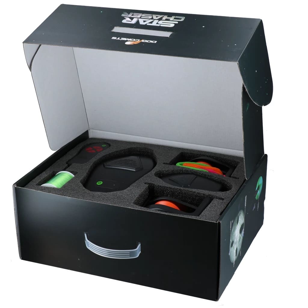 O Star Chaser estimula o instinto de caça do cão. O brinquedo tem 9 regulações de velocidade diferentes (até 50 km/h). O controlo remoto facilita o ajuste da velocidade e da direção do isco, e pode ser controlado até 50 metros de distância.