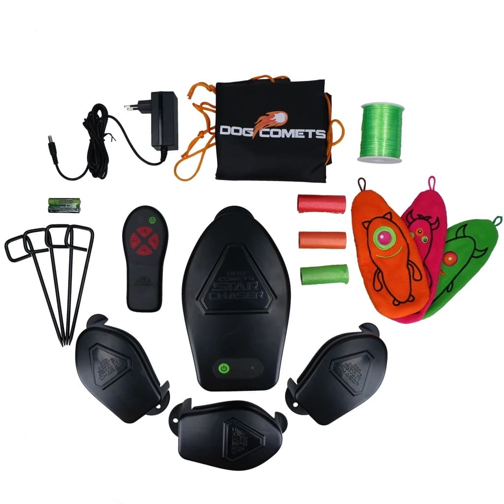 Dog Comets Star Chaser: O novo e inovador brinquedo para cães! Com o Star Chaser da Dog Comet, todos os cães podem ser estimulados e incentivados. O Star Chaser é colocado num relvado e pode ser facilmente montado em minutos. O cão pode então ser incentivado a correr atrás do “isco”.