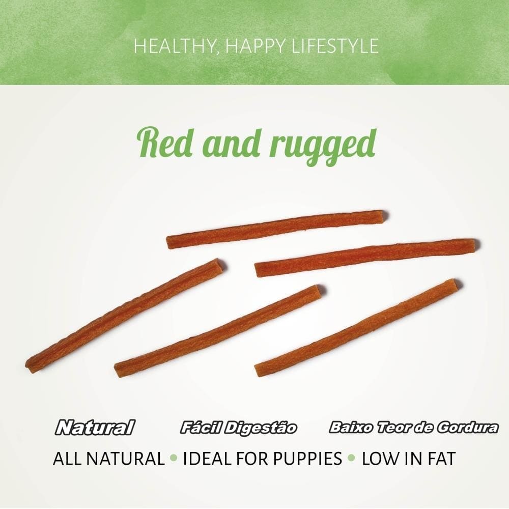 Vermelho e robusto, o nosso Fish D'light Beams faz tudo! Estas guloseimas saudáveis são óptimas para recompensar como snack ou dar entre as refeições.