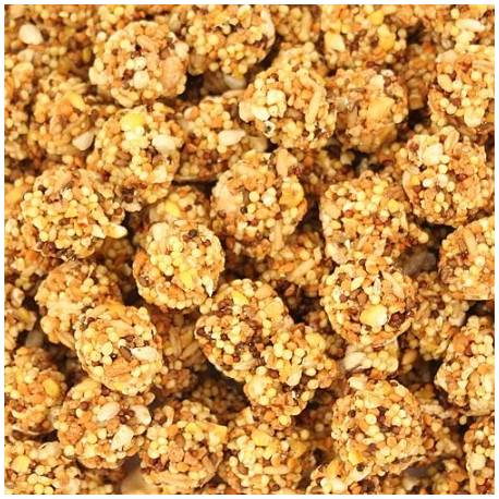 Ingredientes : Milho branco descascado, milho, aveia em flocos, amendoim, semente de capim-amarelo, milho vermelho, cártamo, maltodextrina, colza, trigo, farelo de soja, xarope de milho, fosfato dicálcico, óleo de milho, calcário moído, glicerina, propileno à base de plantas Glicol, gelatina, ovo inteiro seco, propilenoglicol, sal iodado, óleo de canola, cloreto de colina, DL-metionina, ácido cítrico (um preservativo natural), tocoferóis mistos para o frescor, suplemento de vitamina E, ácido ascórbico, suplemento de niacina, proteína de manganês, Proteína de zinco, caroteno, pantotenato de cálcio, biotina, suplemento de riboflavina, selenito de sódio, cloridrato de piridoxina, proteína de cobre, mononitrato de tiamina, suplemento de vitamina B12, suplemento de vitamina D3, cores naturais, ácido fólico. Componente analítica : Proteína bruta (mín.) 12.5%; Gordura bruta (Min) 8%; Fibra bruta (Max) 5%; Humidade (Max) 14%; Ácidos gordos ómega 3 (mín.) 0,49%; Ácidos gordos ômega 6 (mín.) 4.66%.