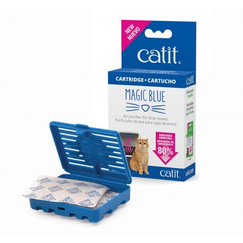 Magic Blue é uma almofada de filtro exclusivo não-tóxico para wc fechadas absorve e retém 80% de amoníaco, que é o componente mais perigoso e irritantes na urina de gato. Previne infecções oculares e respiratórias kit Magic Blue Cartridge vem com 1 cartucho e 2 compressas que duram 1 mês.(caixa azul)