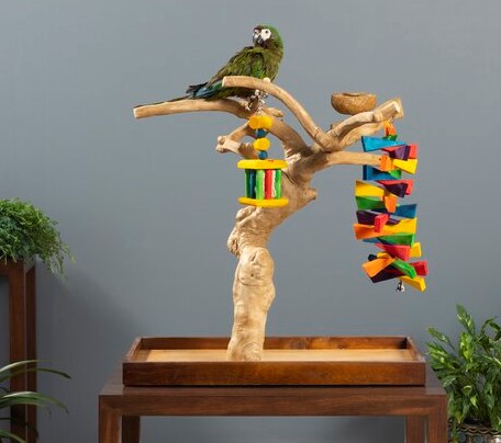 O Java Mini Tree é adequado para papagaios cinzentos africanos, amazonas, eclectus e outros pássaros de tamanho semelhante. O Java Mini Tree Medium possui ganchos extra para pendurar brinquedos. O Java Mini Tree inclui UMA tigela de alimentação de areia moldada. Para colocar numa mesa