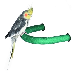 Um poleiro feito em cimento rugoso e torcido para que o pássaro sinta as várias rugosidades que o ajuda a exercitar os seus tendões nas patas afiar o bico e desbastar as unhas