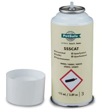 O dissuasor de pulverização PetSafe® SSSCAT monitoriza os movimentos até 1 metro de distância. Quando o seu animal de estimação é detectado, o spray dissuasor envia um spray rápido e seguro que o assusta. O seu animal de estimação aprende rapidamente a evitar áreas que estão fora dos limites. O spray é inodoro e seguro e constitui um estímulo suficiente para dissuadir os animais de estimação de saltarem para as bancadas da cozinha, escavarem nos caixotes do lixo ou entrarem em áreas restritas. É eficaz tanto para gatos como para cães de todos os tamanhos e raças.